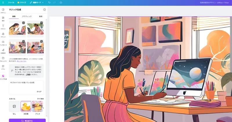 - AI画像生成にはCanvaの「マジック生成」を利用する